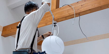 建物の形状や他の設備との取り合いを配慮し、効率かつ経済的な照明器具を設置する工事を行います。蛍光灯からLED照明への交換工事や住宅、オフィスなどの照明の入れ替え・新たに設置する工事など幅広い分野における専門的な技術を活かします。